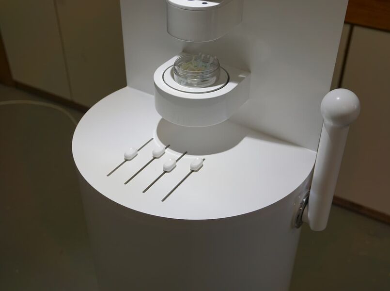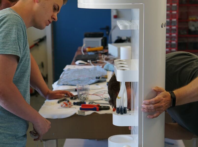 Für die Erprobung verschiedener neuartiger Verkaufskonzepte eines großen Kosmetik-Konzerns erstellten wir 3 verschiedene Prototypen. Im Vordergrund stand, Hand- und Gesichtscremes nachhaltiger an den Endkonsumenten bringen zu können. Die dafür gestalteten Prototypen adressierten 3 verschiedene Nachhaltigkeitskonzepte. Besonderer Bedeutung kam dabei die verbaute Steuerungs- und Dosiertechnik zu. Kontaktlose Näherungssensoren, Soundausgabe, Lichtschaltungen und Dosiermischregelschieber erforderten industrielle Steuerungstechnik und meterweise Kabel im Inneren der Geräte.