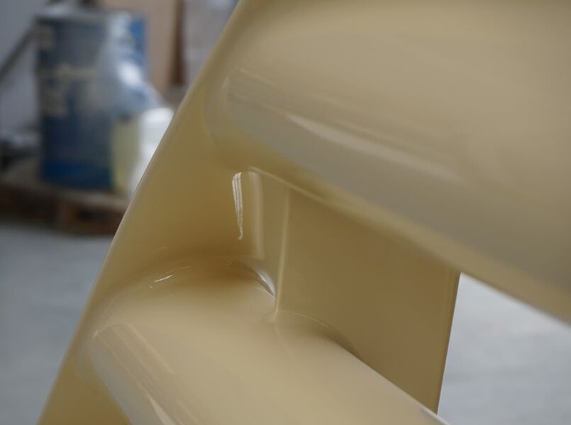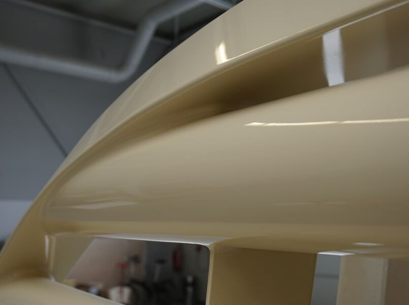 Für ein IAA-Showcar/Concept Car galt es, die vorhandenen Aluminium-Zierleisten mit einer speziellen Glasfaser zu laminieren. Bedingt durch diese Positivbauweise musste die Oberflächengüte durch 10 Klarlack-Schichten mit Zwischenschliff hergestellt werden. Die Spaltmaße und Einbautoleranzen mussten dabei natürlich unverändert bleiben.