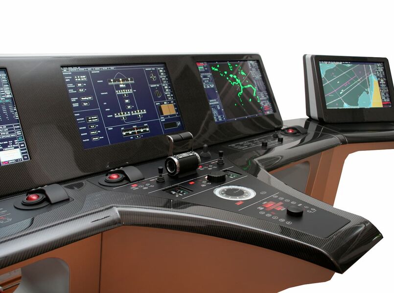 Dieser Hersteller von Schiffselektroniksysteme wollte seine Produkte auf den einschlägigen Fachmessen wie auf einer echten Schiffsbrücke präsentieren, nur optisch ansprechender in einem Möbelbau aus echtem CFK in Sichtcarbonlackierung. Die Elemente der Schiffsbrücke lassen sich modular kombinieren und tragen somit der Anforderung Rechnung, für jede Messe individuell zusammengestellt zu werden. Das Ergebnis begeisterte nicht nur unseren Kunden, sondern auch die Messebesucher. Ein Messebesucher wollte die Brücke seines Schiffes sogar in der von uns gelieferten Art ausstatten lassen.